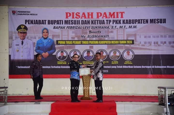 Mesuji, Lensalampung.co – Pemerintah Kabupaten Mesuji menggelar kegiatan Pisah Pamit Penjabat Bupati Mesuji, Penjabat Ketua TP-PKK Kabupaten Mesuji dan Purna Tugas Pejabat Tinggi Pratama Kabupaten Mesuji Tahun 2025.
